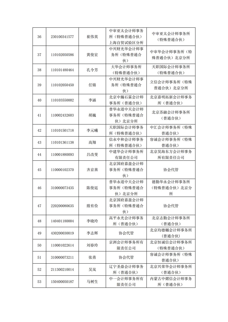 北京注册会计师协会2025年10月转所信息